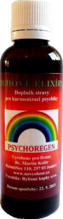 Extrakt ze vzácné kapradiny - jeleního jazyku (Phyllitis scolopendrium) příznivě ovlivňuje stav sleziny, která dle starověkého lékaře a myslitele Hippokrata skrze tzv. černou žluč (řecky "melancholie") ovlivňuje naši náladu směrem k zádumčivosti, nečinnosti a trudomyslnosti. Ve francouzštině a angličtině je slezina běžně spojována s pojmem „splín“ – což je stav smutku, melancholie a špatné nálady. Psychické problémy můžou mít svůj původ rovněž v intoxikaci nejrůznějšími průmyslovými chemikáliemi a jedy z okolního prostředí (voda, půda, vzduch, potraviny, léky). Elixír PSYCHOREGEN proto obsahuje i výtažky z bylin, které působí na celkovou detoxikaci organismu – tužebník jilmový, rozrazil lékařský a ostropestřec mariánský. Další obsaženou bylinou je kozlík lékařský (Valeriana officinalis), který patří mezi nejznámější a současně i nejpoužívanější zklidňující léčivky vůbec. Uklidňující moc kozlíku znala již Svatá Hildegarda z Bingenu a valeriánské kapky nechyběly v žádné domácnosti našich babiček. Kozlíkový výtažek proto nesmí chybět ani v elixíru PSYCHOREGEN, kde společně s dalšími bylinnými extrakty tvoří unikátní synergický komplex účinných látek.